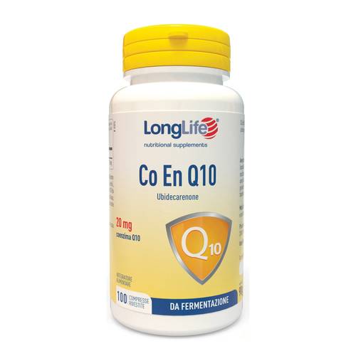 LongLife Co En Q10 20 mgDescrizione Integratore alimentare di coenzima Q10 importante fattore simil-vitaminico ad azione antiossidante che partecipa alla produzione di energia cellulare. Adatto a vegetariani e vegani. Ingredienti Agente di carica: calcio fosfato bibasico; stabilizzante: sorbitolo; addensante: carbossimetilcellulosa di sodio; antiagglomerante: magnesio stearato vegetale; coenzima Q10 da fermentazione; agenti di rivestimento: idrossipropilmetilcellulosa, talco, polietilenglicole; coloranti: biossido di titanio, riboflavina. Non contiene glutine. Caratteristiche nutrizionali Valori medi Per 1 compressa Coenz...