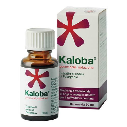 Posologia. Compresse. Adulti e adolescenti di eta' superiore a 12 anni: la dose raccomandata e' 1 compressa 3 volte al giorno. Gocce. Adultie adolescenti di eta' superiore a 12 anni: la dose raccomandata e' 30gocce (corrispondenti a circa 20 mg di estratto liquido essiccato dipelargonio) 3 volte al giorno. 30 gocce di soluzione corrispondono a circa 1,5 ml di soluzione. Durata del trattamento: la durata massima del trattamento e' di 7 giorni. Popolazioni speciali: non sono disponibili informazioni su pazienti con compromissione epatica e renale. Popolazione pediatrica: la sicurezza e l'efficacia di Kaloba nei bambini dieta' inferiore ai 12 anni non sono state ancora stabilite. Modo di somministrazione. Compresse: Kaloba deve essere assunto con un po' di liquido, senza essere masticato. Gocce: Kaloba puo' essere assunto direttamente con un cucchiaio oppure diluito in un po' di liquido.